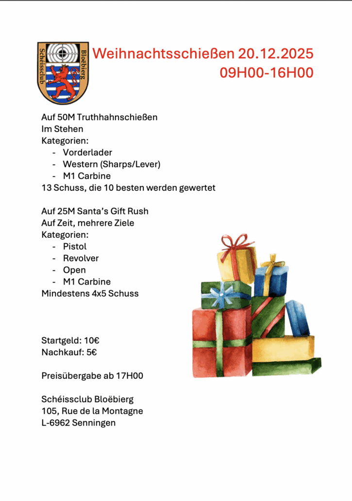 ËFFNUNGSZÄITEN – SCHÉISSSTAND*